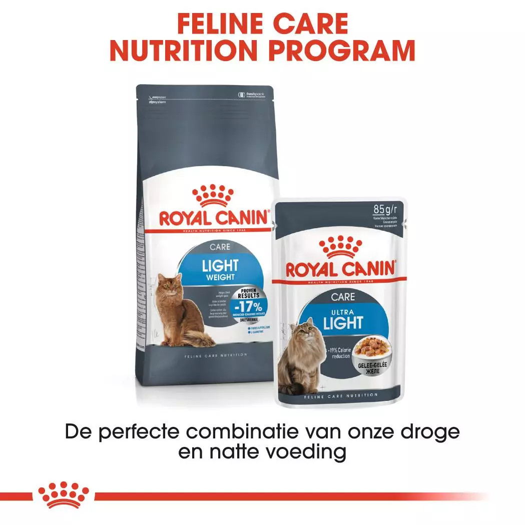 Royal Canin Light Weight Care is een complete en uitgebalanceerde voeding die speciaal is ontwikkeld om gewichtstoename te beperken en het behoud van een gezond gewicht te helpen ondersteunen.