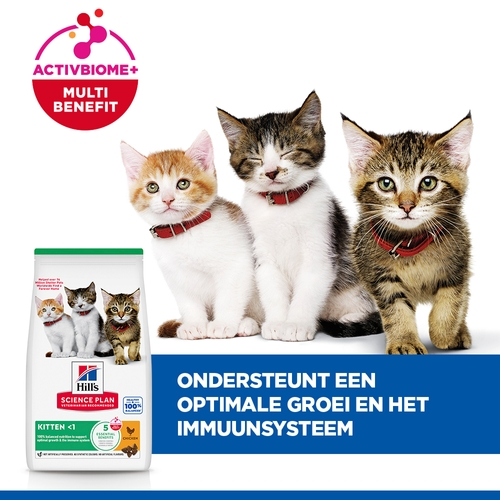Hill's science plan kitten chicken is speciaal samengesteld om het immuunsysteem en de gezonde spijsvertering te ondersteunen, met klinisch bewezen anti-oxidanten en DHA van visolie.