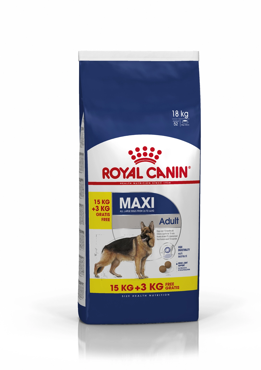 Royal Canin maxi adult 15kg+3kg gratis bonusbag bestellen bij Petfooddiscount
