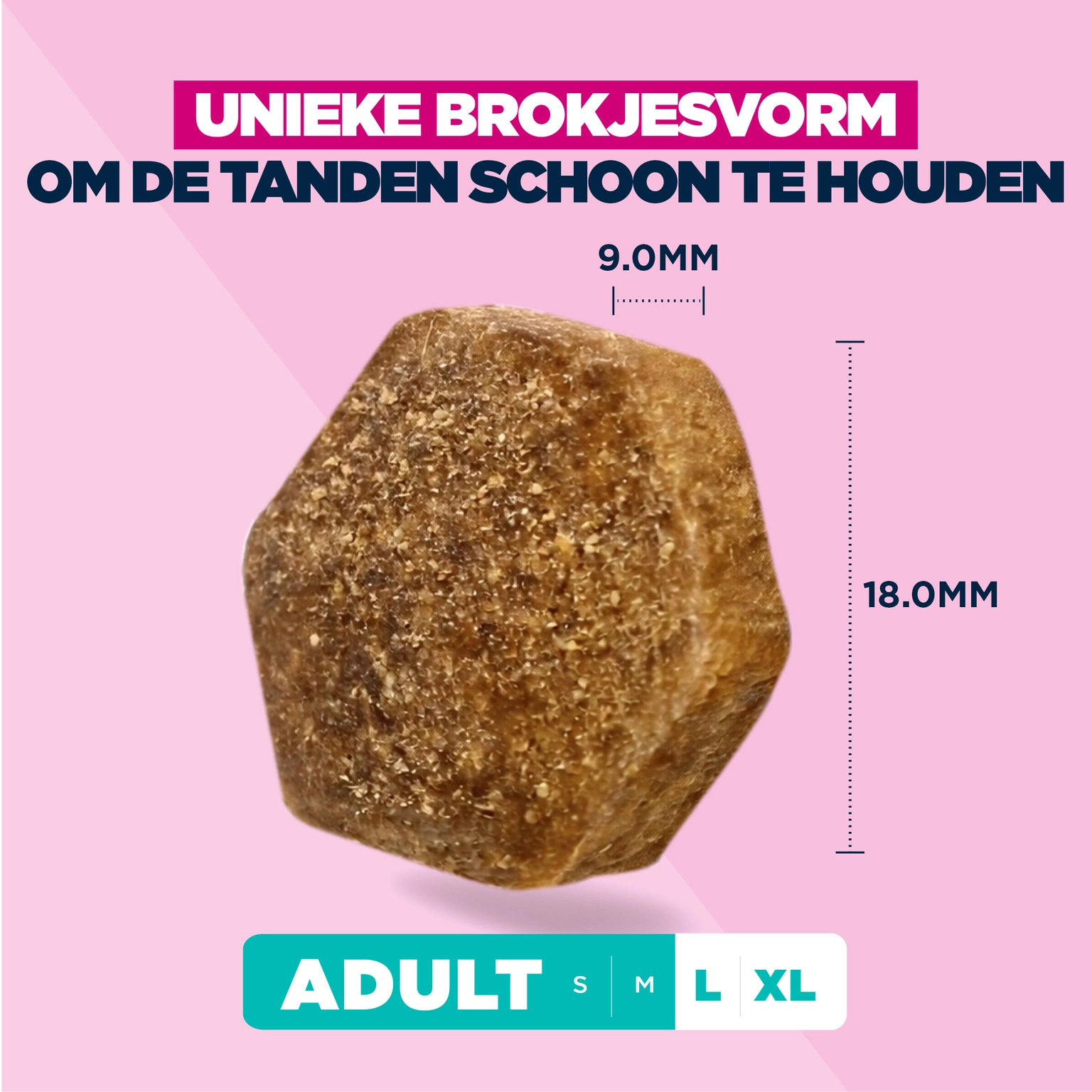 Belangrijkste voordelen: Eiwit en vet op maat voor minder druk op de gewrichten voor oudere volwassen honden van grote rassen. Bevordert een optimale spijsvertering met prebiotica en klinisch bewezen bietenpulp. Klinisch bewezen dat het de tandsteenvorming vermindert in 28 dagen. Vermindert plaque en behoudt sterke tanden. Helpt op natuurlijke wijze vet te verbranden met behoud van spiermassa, bevat L-carnitine.
