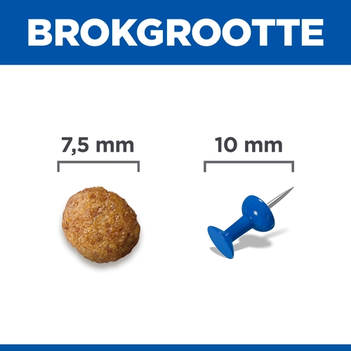 Groot in de liefde, klein van formaat. Hill’s Science Plan Small & Mini Adult met Kip is hondenvoer op maat voor de unieke behoeften van kleine en mini honden in de bloei van hun leven. Speciaal gemaakt met de kleinste brokjes en licht verteerbare ingrediënten voor een gezonde spijsvertering. Het bevat een voedzame mix van omega 6-vetzuren & vitamine E voor een gezonde huid en weelderige vacht. Tevens bevat het hoogwaardige eiwitten voor sterke spieren en de speciale Small & Mini-antioxidantenmix voor levenslange immuun-ondersteuning.