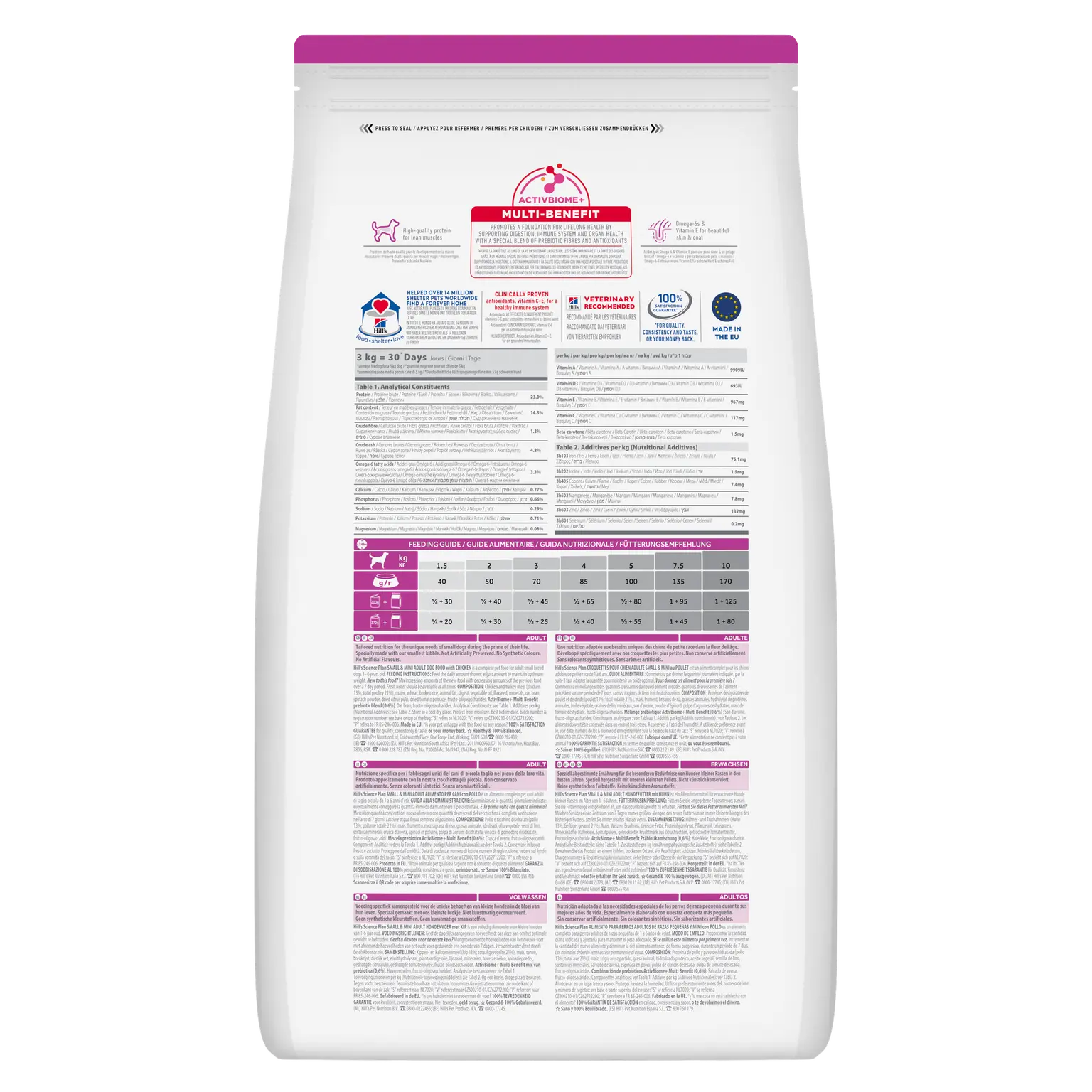 Hill's Science Plan Small & Mini Adult Hondenvoer met Kip is een compleet dierenvoer, speciaal samengesteld met ActivBiome+ Multi-Benefit technologie. Het is een gerichte voeding voor de unieke behoeften van kleine honden in de actiefste periode van hun leven.