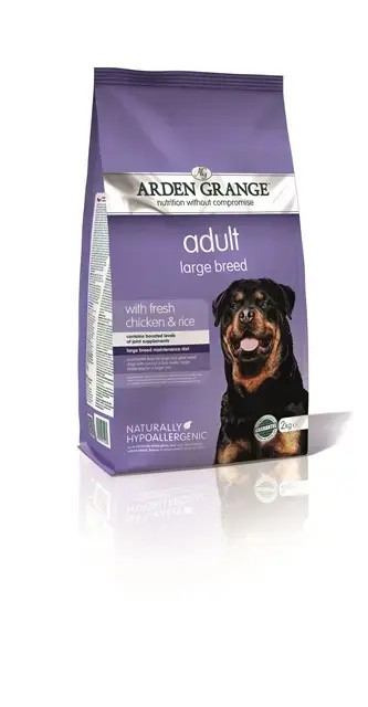 Arden Grange adult Large breed met verse kip en rijst is speciaal samengesteld om te voldoen aan de voedingsbehoefte voor grote honden, met een grotere korrel en verhoogde waarden glucosamine, Chondroïtine en MSM.