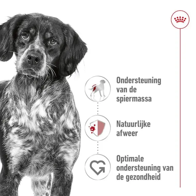 Royal Canin Medium Adult is een complete en uitgebalanceerde voeding die speciaal is ontwikkeld om te voldoen aan de specifieke behoeften van uw middelgrote hond en hem op volwassen leeftijd te ondersteunen. Deze voeding is ontwikkeld voor middelgrote honden die tussen 11 en 25 kg wegen en ouder zijn dan 12 maanden. Middelgrote honden hebben geregeld lichaamsbeweging nodig voor een goede spierontwikkeling.