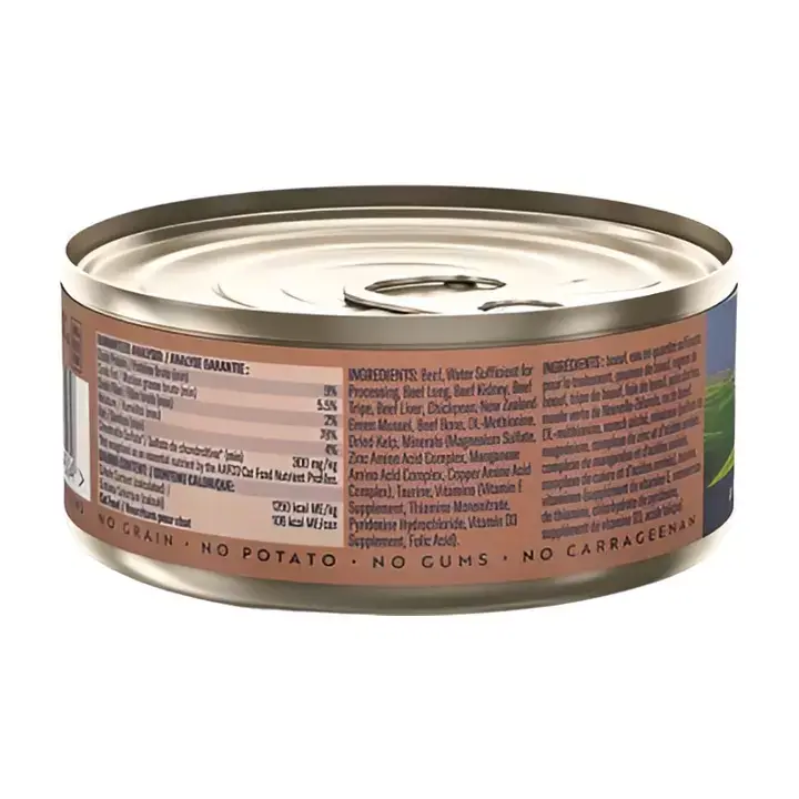 Ziwi Peak Daily Cat Cuisine Beef is een nieuwe enkel-proteïne voeding, ideaal voor katten met allergieën, gevoeligheden voor andere eiwitten of die een lager vetgehalte in hun voeding nodig hebben. De ingrediënten van ZIWI Beef zijn afkomstig van lokale Nieuw-Zeeland boerderijen, een goede zorg voor de dieren is een vereiste. Ze worden gras-gevoerd.