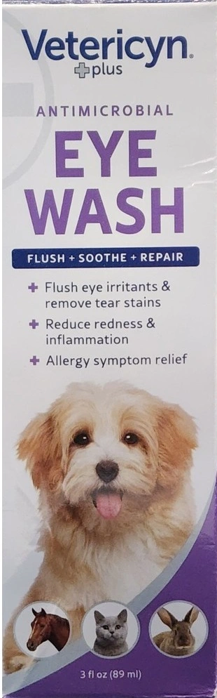 Veeg overtollige vloeistof dat zich in de hoeken van de ogen heeft verzameld weg. Spoel de ogen voorzichtig met Vetericyn. Breng twee keer per dag aan, totdat het aangedane gebied hersteld is. Naspoelen is niet nodig. Meest geliefde dierverzorgingsproducten in de VS. Aanbevolen door Dierenartsen.