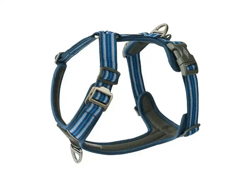 Dog Copenhagen Comfort Walk Air Harness X-Large Ocean Blue is een sterk en lichtgewicht tuig voor het dagelijks gebruik, dat gemaakt is van duurzaam materiaal en met een zachte ademende voering. Doordat het tuig op 4 punten te verstellen is, heeft het een goede pasvorm. Daarnaast is het tuig gemakkelijk aan te doen. Deze is voor alle honden geschikt en ook zeer geschikt voor ranke en slank gebouwde honden en/of een diepe borstkast. Het tuig heeft een ring op de rug voor normale aanlijning van het tuig en een ring aan de voorkant waarmee u het tuig als hulpmiddel voor anti-trek training kunt gebruiken. Dit tuig heeft de ook mogelijkheid om de band in de nek los te maken, zodat het tuig niet over de kop hoeft.