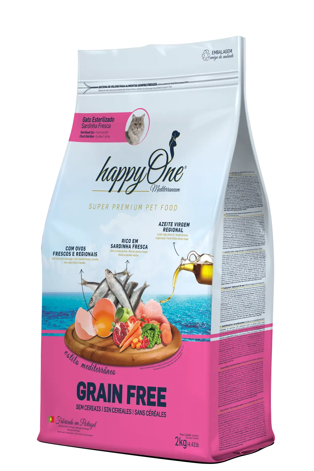 HappyOne Mediterraneum Cat Sterilised Fresh Sardine 2kg bevat een uitgebalanceerde mix van essentiële voedingsstoffen, waaronder organisch zink, dat bijdraagt aan een gezonde huid en vacht. Sardientjes zijn rijk aan omega-3-vetzuren (EPA en DHA). Ze bevatten diverse vitaminen en mineralen, zoals fosfor, een belangrijk mineraal voor de vorming en het behoud van gezonde botten. Eiwitten met een hoge biologische waarde die gemakkelijk verteerbaar zijn. Eieren zijn rijk aan eiwitten, met alle essentiële aminozuren in evenwichtige concentraties en verhoudingen. Olijfolie heeft uitstekende voedingswaarden, waaronder vitaminen en enkelvoudig onverzadigde vetzuren. Het is rijk aan antioxidanten die een gunstig effect hebben op het hart- en vaatstelsel. Natuurlijke antioxidanten beschermen het lichaam tegen vrije radicalen, voorkomen vroegtijdige veroudering en versterken het immuunsysteem van honden en katten. Naast de hoogwaardige eiwitten voegt HappyOne ook fruit en groenten toe: appels, tomaten, wortels, erwten en zoete aardappelen. Deze ingrediënten zijn bronnen van vezels, vitaminen en mineralen. Suikerriet, groene mossel en Algen zijn ingrediënten die gunstig zijn voor de darmgezondheid, gewrichtsgezondheid en de ontwikkeling van de hersenen en het gezichtsvermogen.