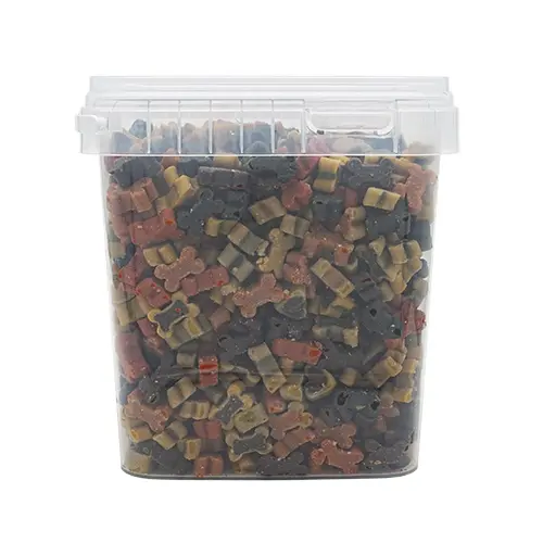 Heerlijke mix van zachte beloningstrainers, geschikt voor alle honden groot en klein, verpakt in een handige hersluitbare emmer voor optimale kwaliteit. Abby Nature Party Mix Soft is perfect om uw hond te belonen bij training of goed gedrag. Het zijn kleine beloningssnoepjes, dus snel op tijdens de training, en dan weer door! Bijna alle honden houden van deze snoepjes, dus dat zit wel goed. Bedelt uw hond weleens als u een koekje bij de koffie neemt? Geef hem dan zijn eigen Soft treat en het bedelen zal snel afgelopen zijn. Hij heeft immers zijn eigen “koekje bij de koffie”!