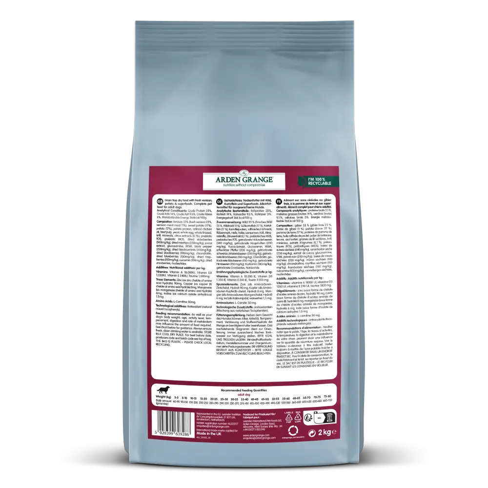 Arden Grange dpg adult sensitive venison&potato grain free 2kg bestellen bij Petfooddiscount