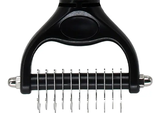Deze 2-zijdige klittenkam zorgt voor krachtige ontklitting in twee richtingen. Hij is ontworpen voor het effectief verwijderen van klitten en losse haren bij honden met een middellange tot lange vacht. Dankzij de dubbele zijde kun je de kam op twee manieren hanteren, waardoor je efficiënter werkt en altijd een comfortabele grip behoudt, ongeacht de hoek of zijde van het lichaam. Eén tandafstand, twee toepassingen: de tanden van deze kam staan gelijkmatig verdeeld en zijn aan beide zijden identiek. De tweezijdige vorm maakt het mogelijk om vanuit verschillende richtingen te werken zonder dat je handpositie steeds aangepast hoeft te worden – ideaal voor moeilijk bereikbare plekken of langdurige verzorging.